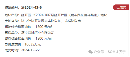 地块六:经开区JJK2024-007号经开片区(嘉丰路东瑞祥路南)地块【济宁西城置业有限公司竞得】