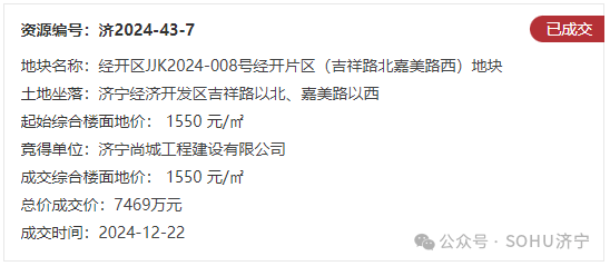 地块七:经开区JJK2024-008号经开片区(吉祥路北嘉美路西)地块【济宁尚城工程建设有限公司竞得】