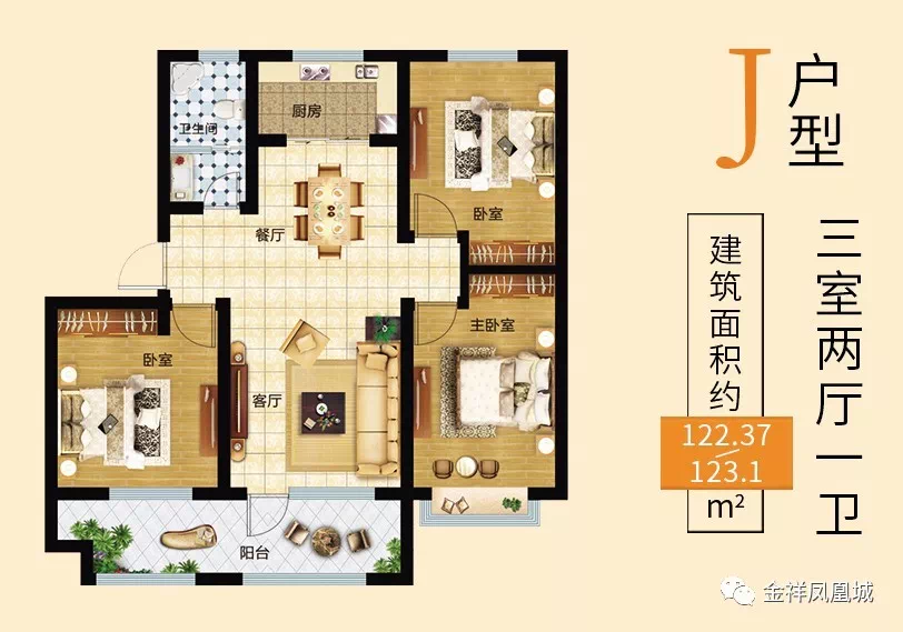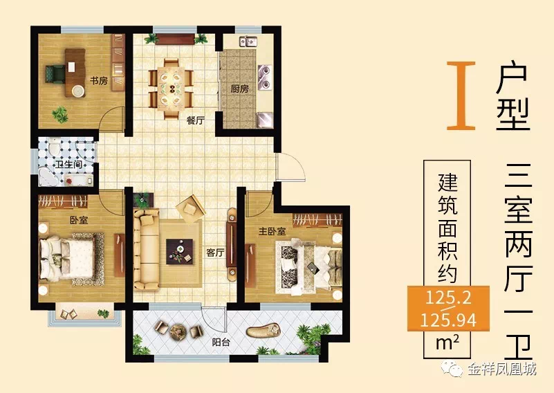雅致户型 荟萃生活雅境 — I户型三室两厅一卫建筑面积约125.2/125.94㎡餐厨一体 细节体现关爱布局合理 愉悦品尝生活美妙滋味约7.5米超大阳台 静享阳台上观景的花园式体验