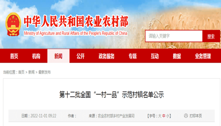 近日,农业农村部根据《全国“一村一品”示范村镇认定监测管理办法(试行)》《农业农村部办公厅关于开展第十二批全国“一村一品”示范村镇认定工作的通知》(农办产〔2022〕4号)部署要求,经村镇申报、县市审核、省级推荐、部级专家评审,初步确定北京市平谷区东高村镇崔家庄村等396个村镇为第十二批全国“一村一品”示范村镇。其中,济宁2个村镇拟入选全国“一村一品”示范村镇。现将名单予以公示。