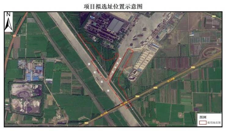 建设项目拟选址位置:济宁市任城区南跃进沟与京杭运河交汇处(详见附图)