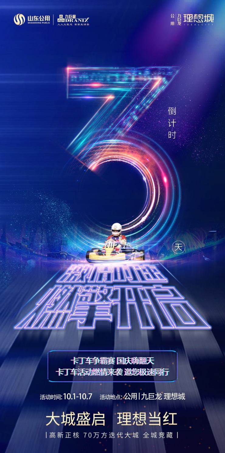 激情时速,燃擎开启。公用九巨龙理想城卡丁车争霸赛,国庆嗨翻天。大城盛启,理想当红。高新正核,70万方迭代大城,全城竞藏。