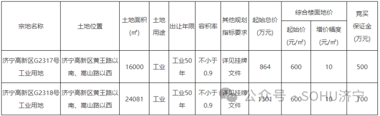 占地60亩,起始价2165万元!济宁高新区2宗土地挂牌